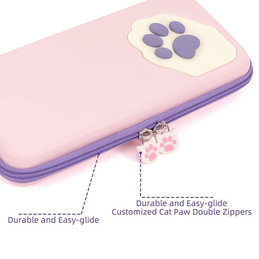 Cute Cat Paw Case Compatible with Nintendo Switch/Switch OLED - Portable Hardshell Slim Travel Carrying Case Fit Switch Console & Game Accessories - a Removable Wrist Strap (Pink Purple)